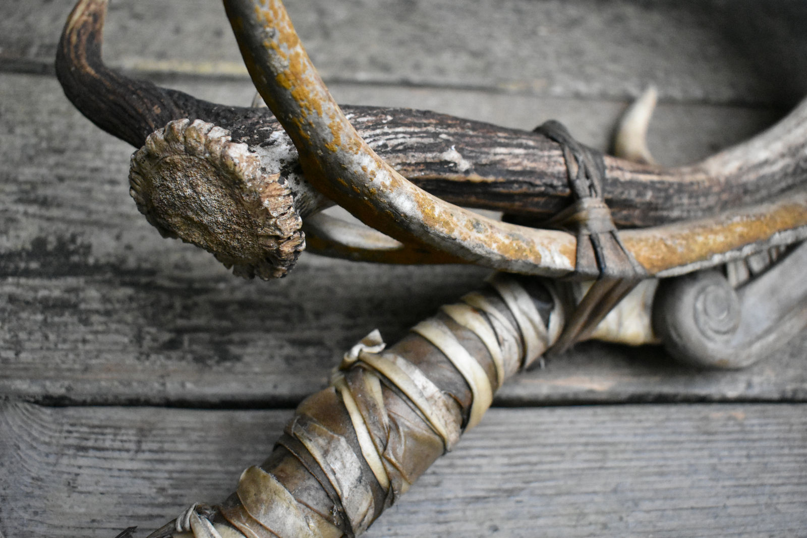 The objects are mythic composits, power objects, tools to provoke dreams, invoke wild visions. Perhaps they are bridges to the Cave Mind, to old songs and old stories.
